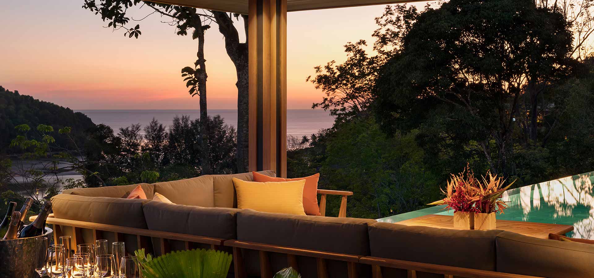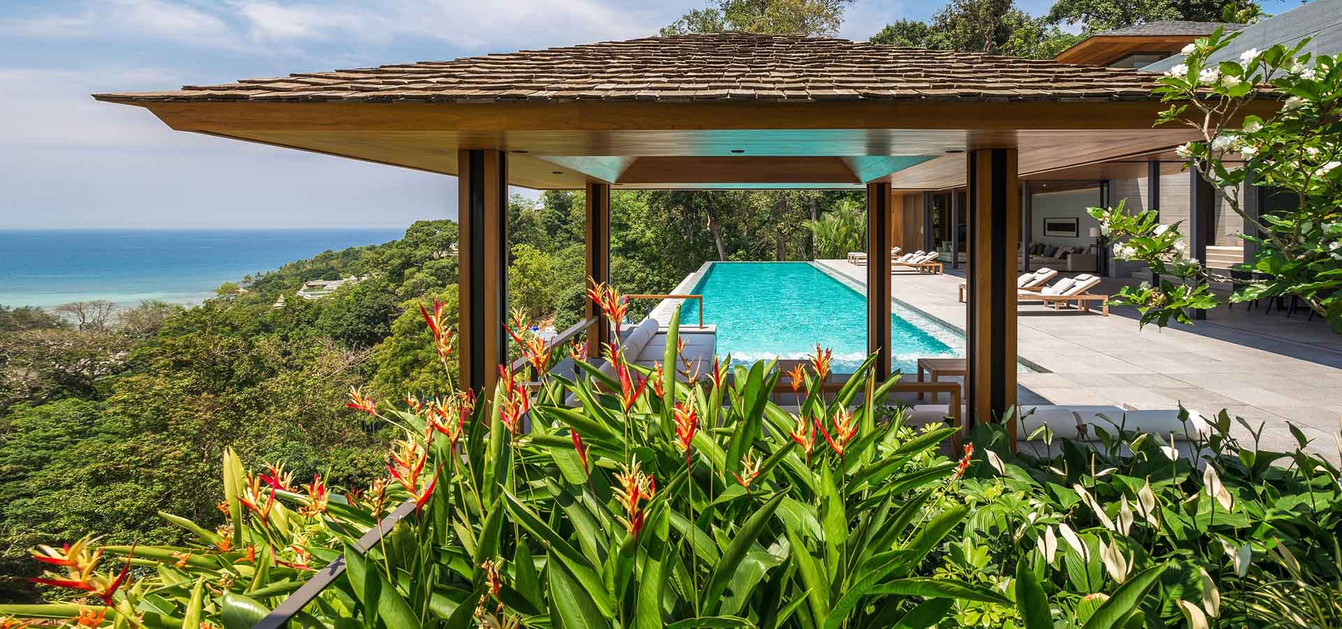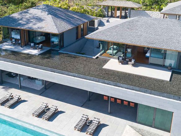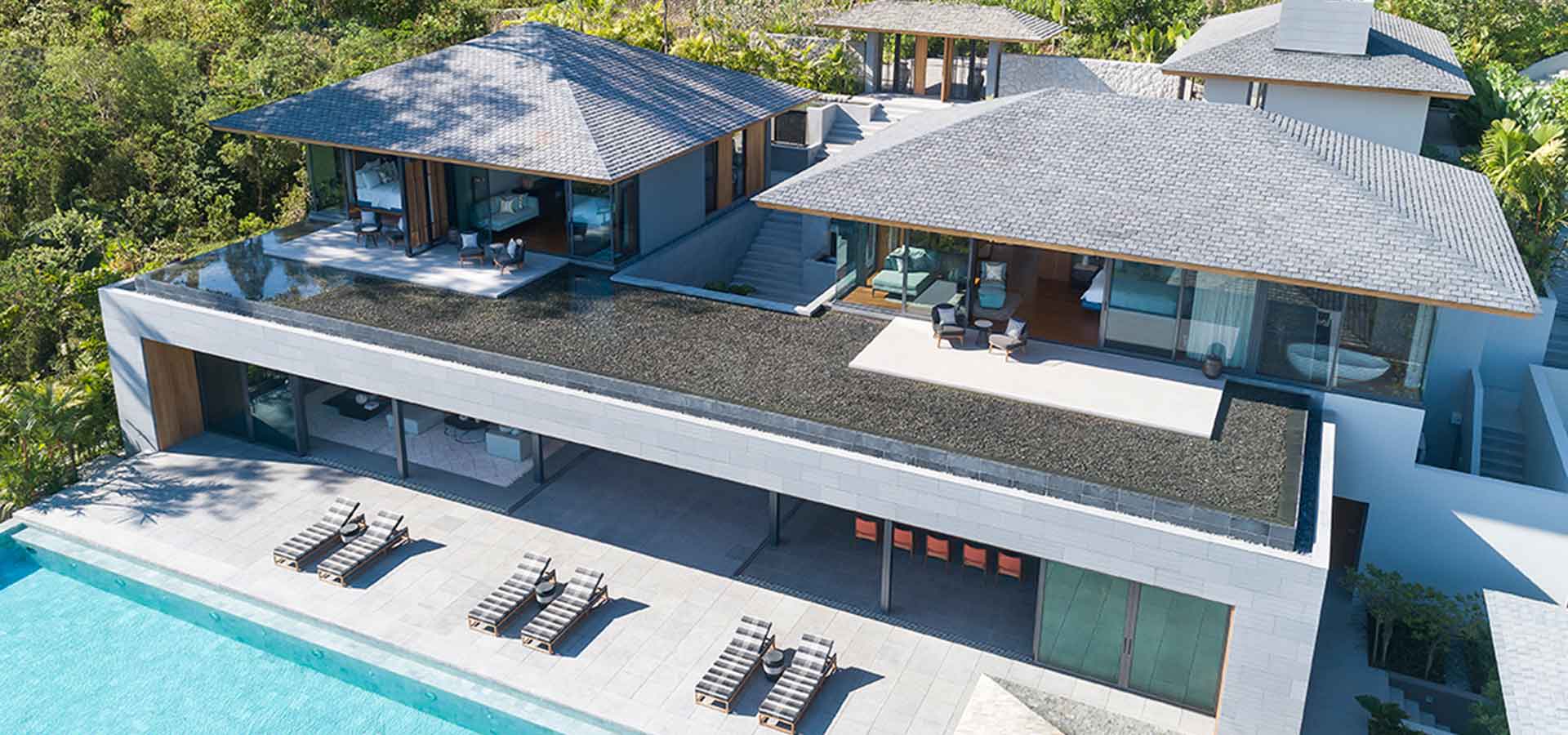 Situated in a prestigious neighbourhood, 22 modern villas are thoughtfully positioned across 100 rai (40 acres) of lush, forested hillsides above pristine Layan Beach.