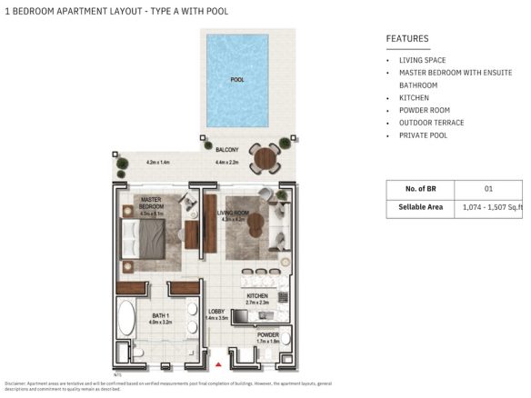 | 1 Bed With Pool | Branded Residences | $863,383 / USD | 1 | 1 | 1141 | 01/25 |