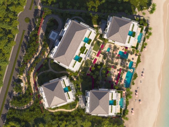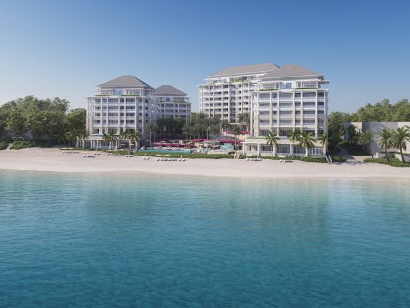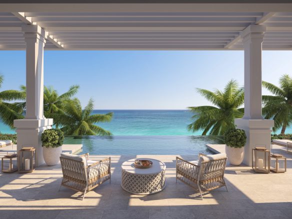 Five-bedroom beach villas will offer 7,459 square feet (693 square metres) of interior living space with 6,604 square feet (614 square metres) of outdoor terraces, including a private pool.