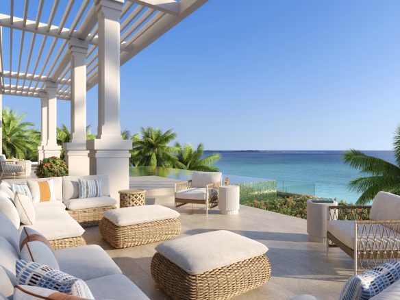 The iconic Bahamian style of The Ocean Club is reflected in The Residences. You see it in the pink blush of the buildings’ stonework, in the stately columns and in the expansive, deep terraces.