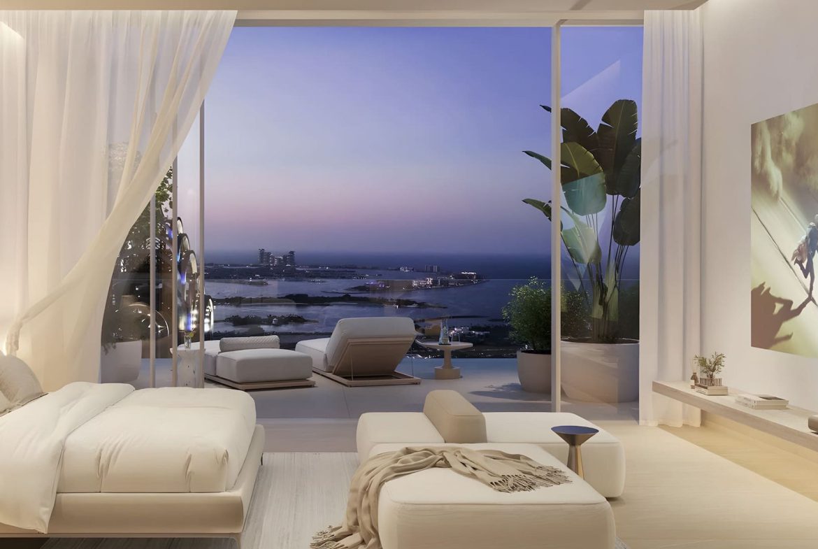 Interior Design: Residences feature open-plan living and dining areas with 3.2-meter floor-to-ceiling windows, offering breathtaking views of Dubai’s iconic skyline and the Arabian Gulf.