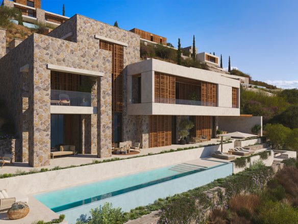 The Mirabello Villas Collection at Elounda Hills benefits from climate responsive and environmentally sensitive design at its core.