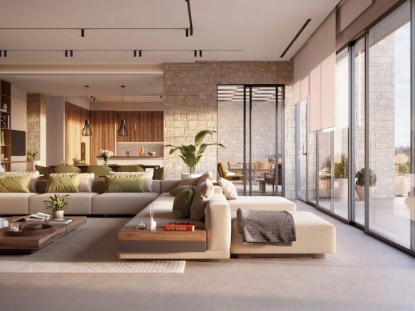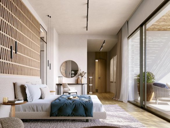 Leading off large open plan living areas are bedroom suites, some with private terraces, offering quiet spaces to read or reflect.