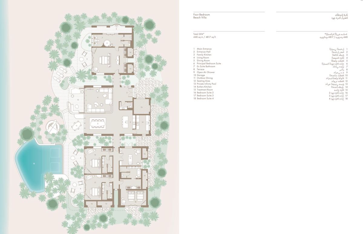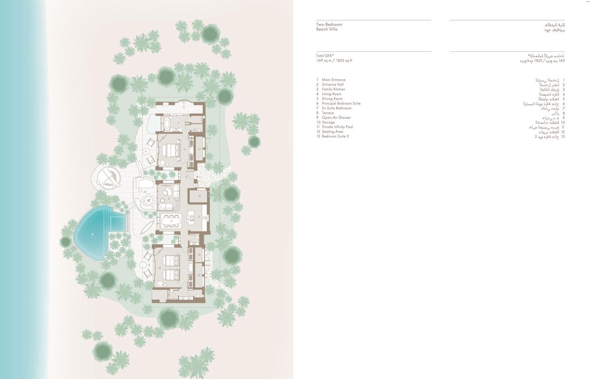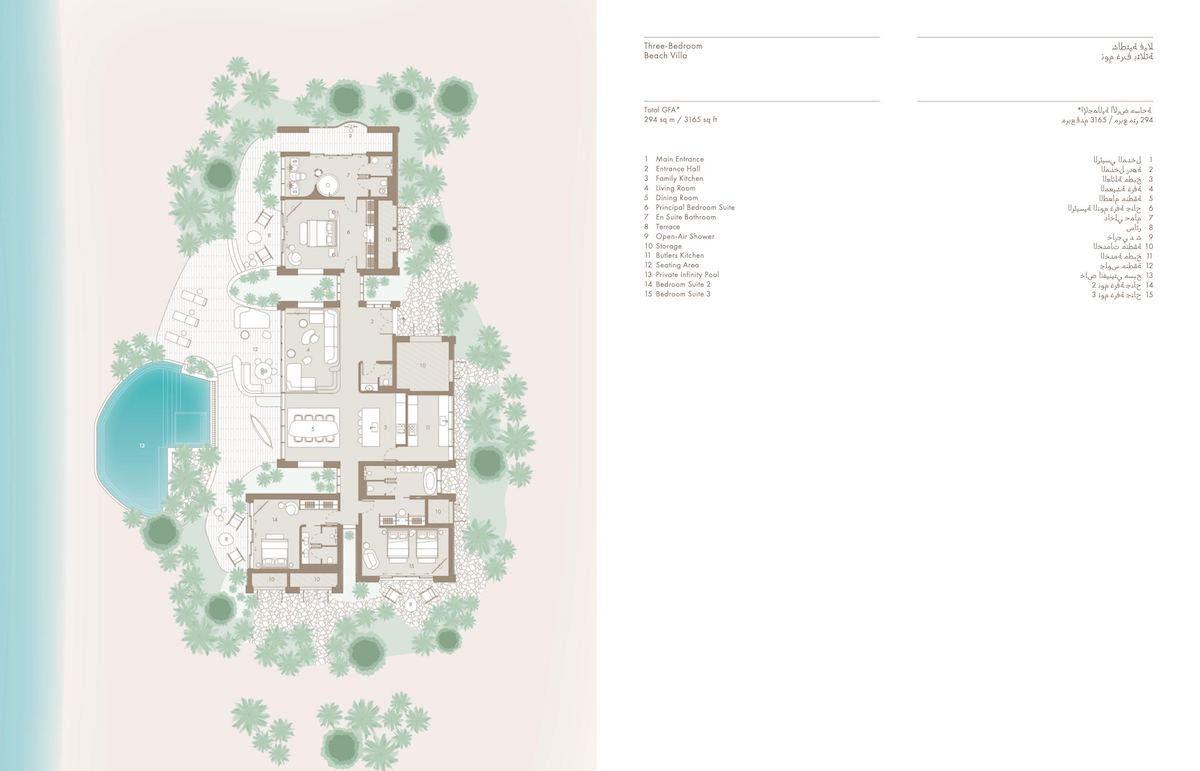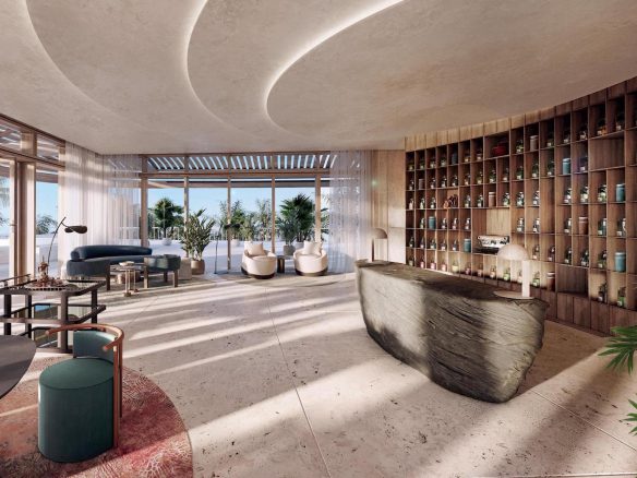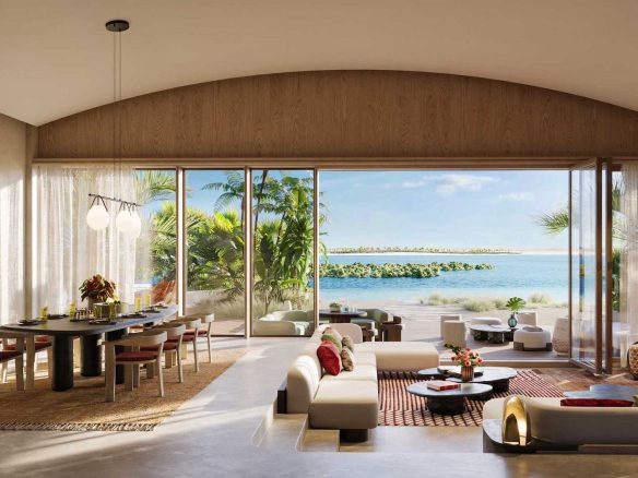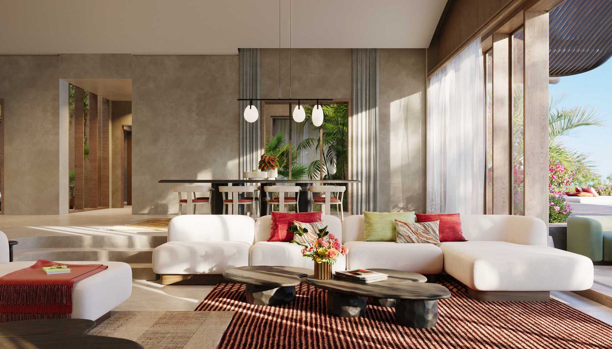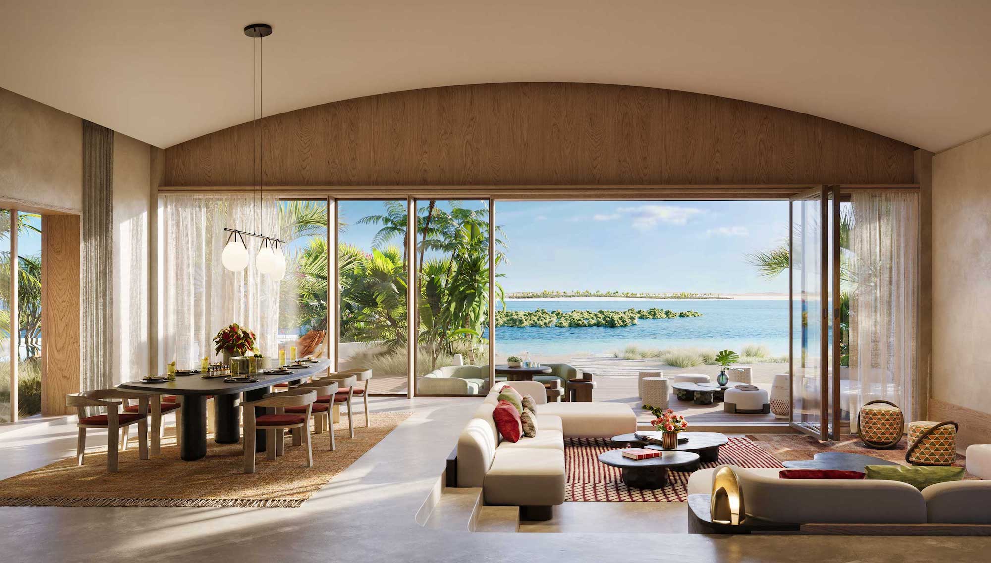 The residences are designed by award-winning architecture firm Foster + Partners, with interiors by the globally renowned Rockwell Group. The beach villas are positioned to rest naturally along the shoreline, featuring design elements that mirror organic forms and textures from the natural environment. Each residence embodies understated elegance while maximizing the connection to the beach, sea, and sky.