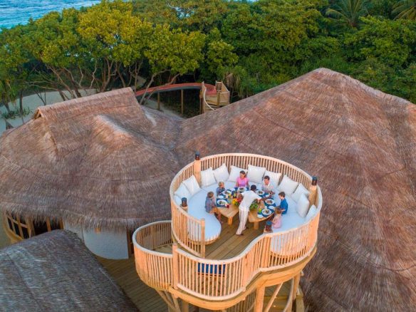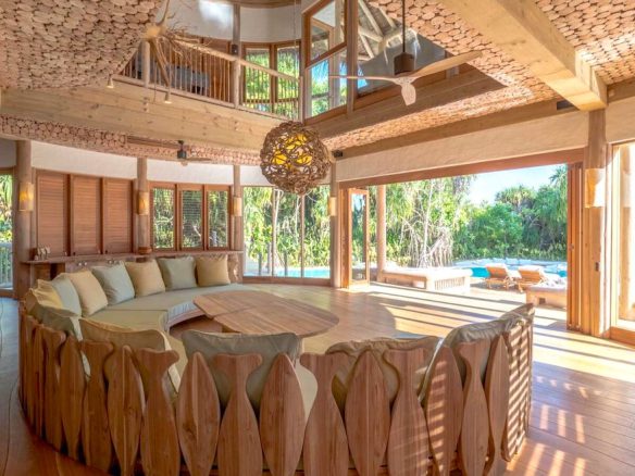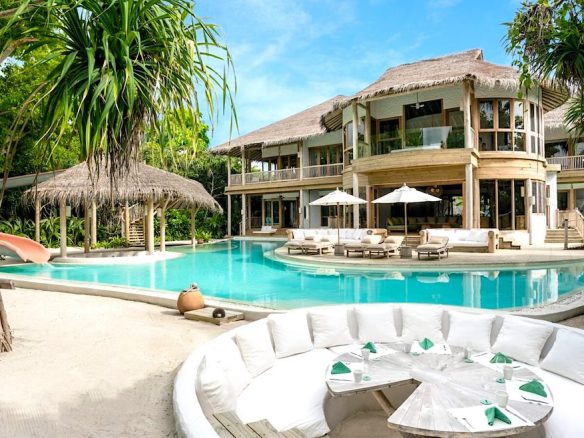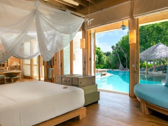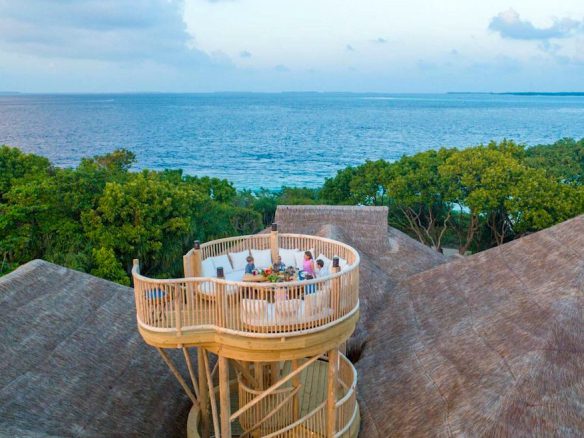 Soneva Fushi Villa 38. Enjoy the views from the 11-metre viewing tower and Moonlight Table, dip into the private pool or unwind in the gym, library, sauna and steam rooms.