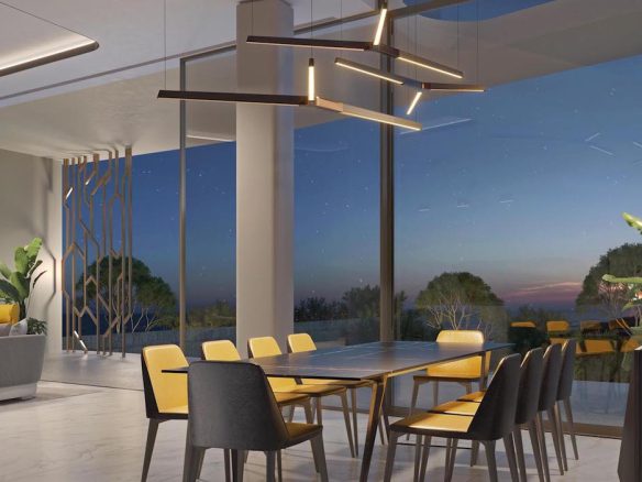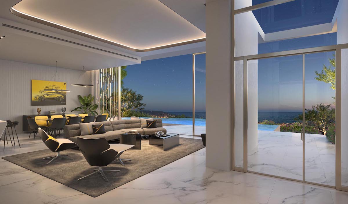 Residences feature Lamborghini-inspired designer kitchens, spacious roof terraces, private swimming pools, sauna and steam rooms, home theatre rooms, elevators across four levels, car elevators, spa rooms, and multipurpose gyms.