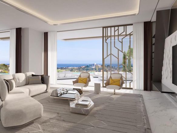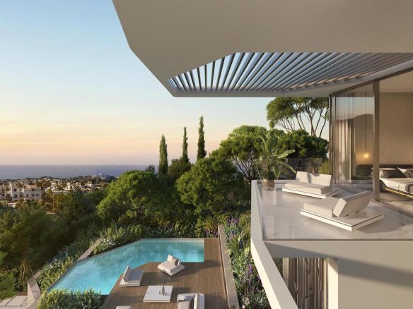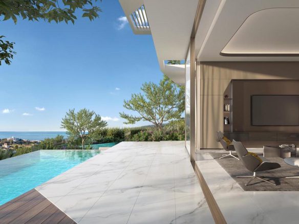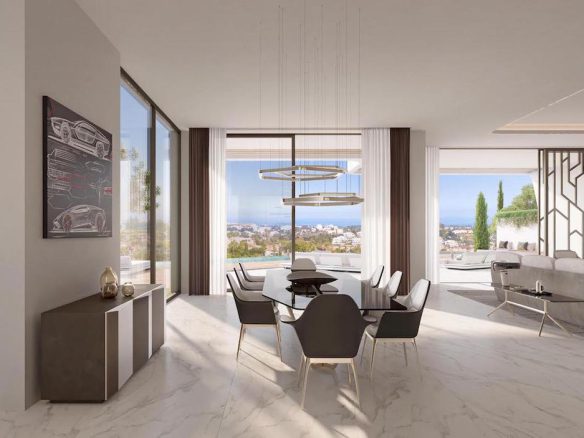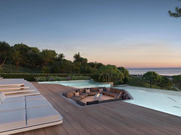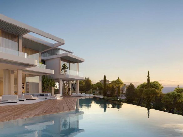These luxury 4-5 bedroom ultra luxury villas for sale in the heart of Benahavís in Spain, are carefully positioned at different elevations, ensuring uninterrupted views of the Mediterranean Sea, golf courses, and surrounding valleys. The residences sit on on generous land plots of 1000+ square meters and internally start in size from 700 square meters.